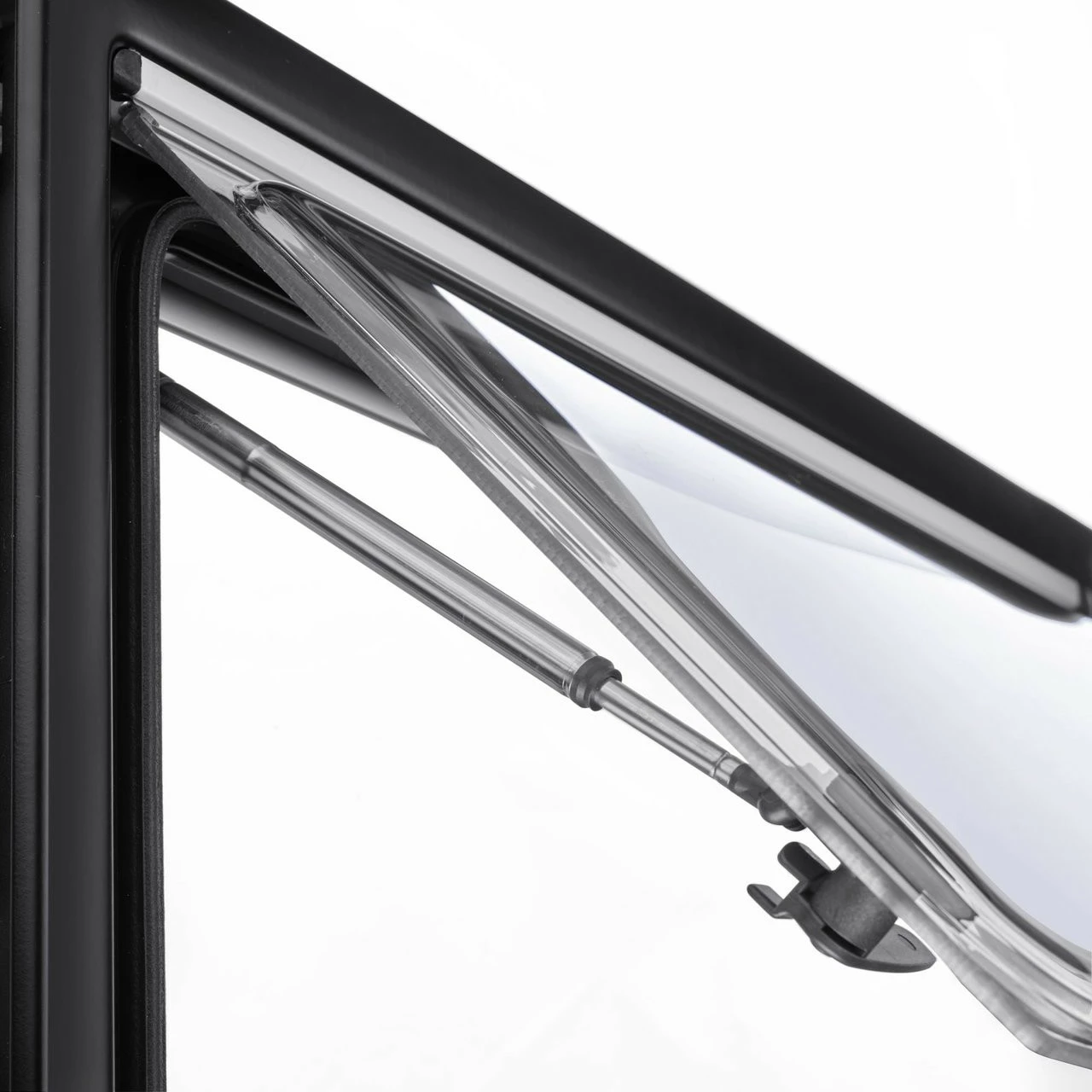 An ideal complete window system for caravans, motorhomes and horsebox and van conversions, the Dometic Seitz S4 hinged window is incredibly quick and easy to install and comes with a set of features for added user friendliness. As well as being fabulously energy efficient thanks to its thermal insulation, the Dometic Seitz S4 hinged window also benefits from an integrated roller blind and fly net which offer ease of movement and control against the elements! The Dometic Seitz S4 hinged window also provides a safety catch for added security to prevent it from being opened from the outside.