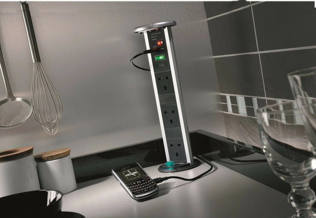 For those who are looking to watch your energy bills, the Deluxe Pop Up Sockets display a neon red control switch, which indicates that the Power Dock is active. It can be a handy feature to check that you have switched off the necessary appliances before you leave your home.