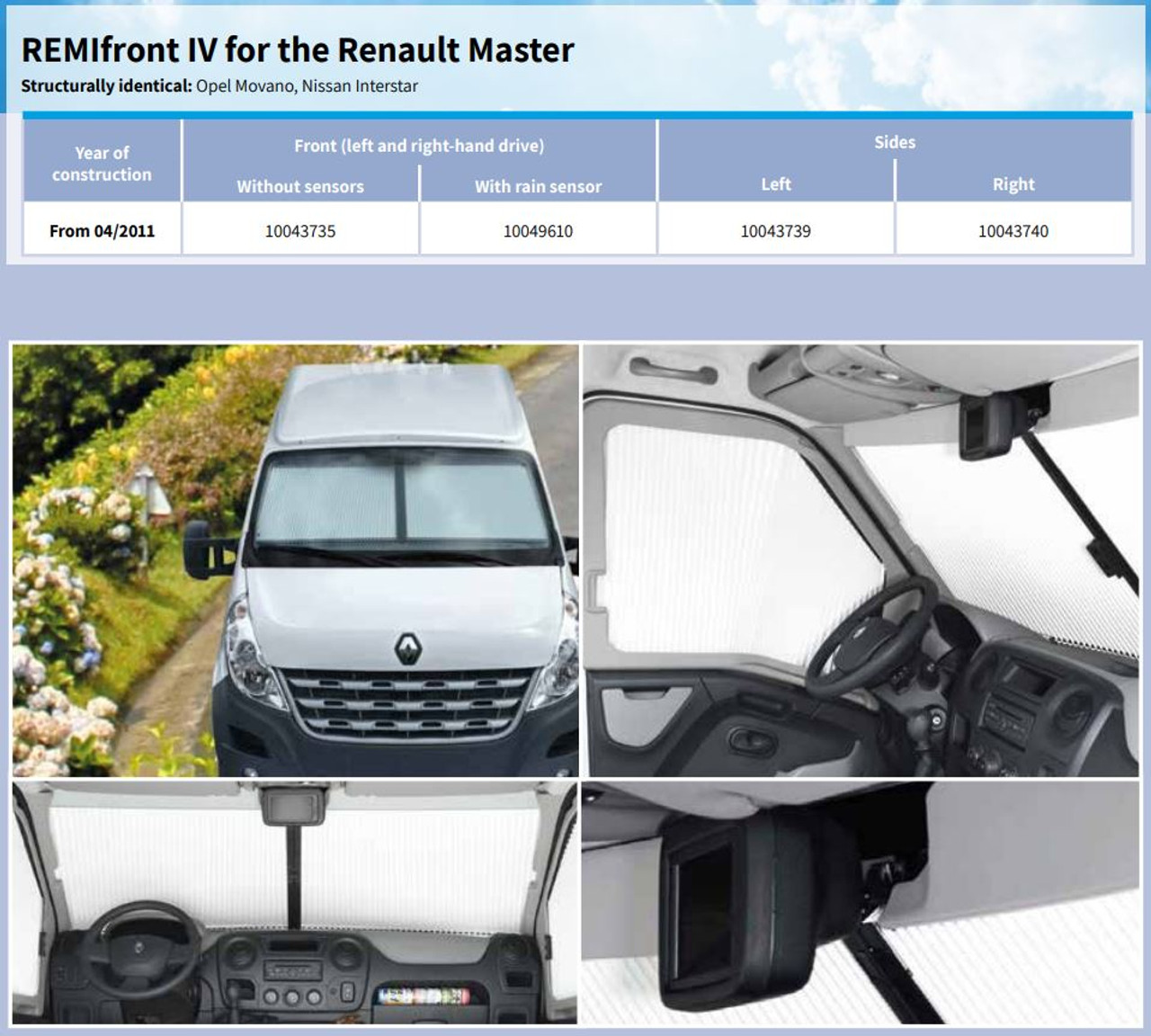 An easy to install option that provides privacy and prevents the interior of the cab getting too hot in the height of summer and cold in the depth of winter, the remis cab blinds are the perfect addition to any motorhome allowing you to extend your living space without comprimising on privacy. While the Remis cab blinds are detracted they dont affect driver or passenger view due to careful design.