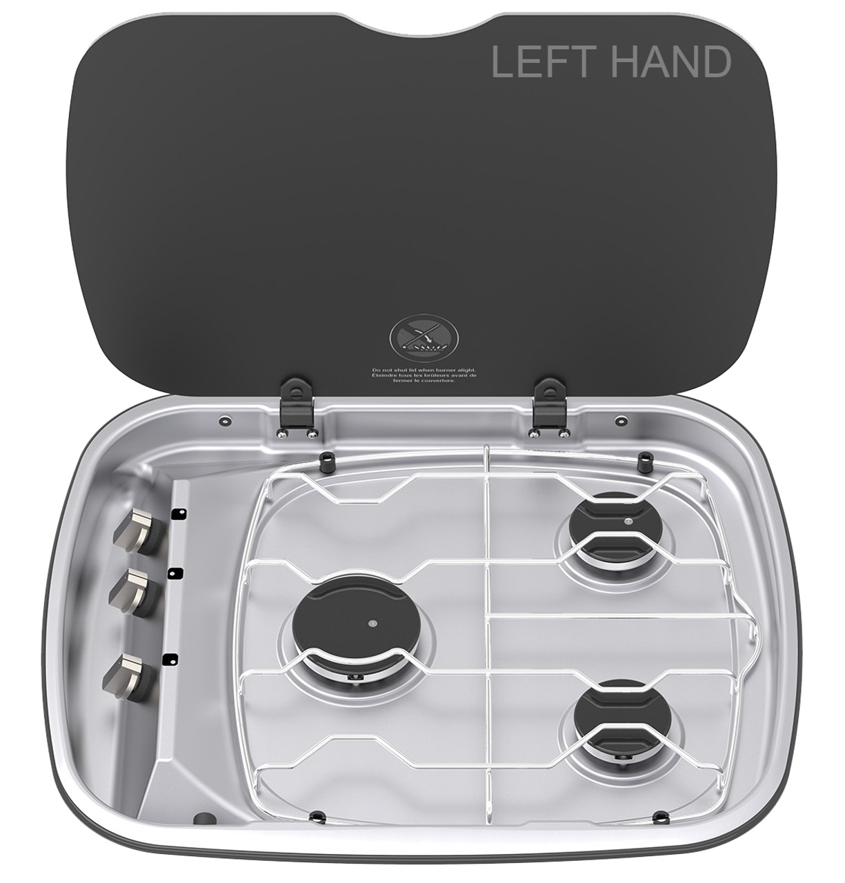 Featuring a robust, heat resistant Chinchilla Glass lid that can also double up as a useable cutting surface, the Spinflo Argent 3 Burner Hob is accommodatingly space efficient and is available as either a right handed or left handed model to suit the fitting requirements of your caravan, motorhome or campervan kitchen area. Simply use the drop down menu at the top of the page to mark your preference prior to checkout.