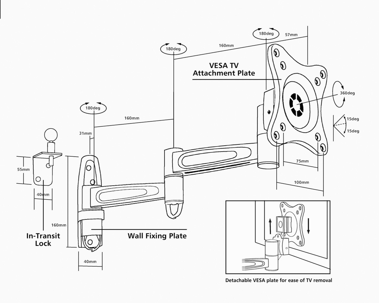 • Detachable VESA plate for quick TV removal